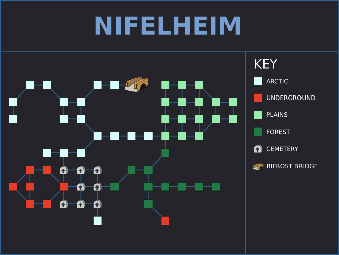 Maps of the Map War FieldsThe map wars occur on the following four fields, which are connected by the Bifrost Bridge. Download all four maps as a PDF file. Level 1: Nifelheim